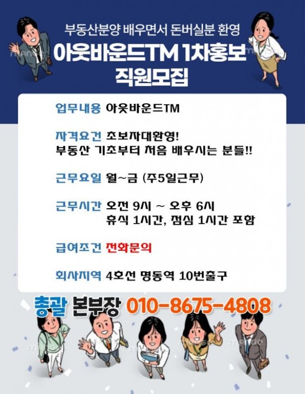 ■ 모집분야 : 아웃바운드TM 1차홍보 직원모집 ■ 업...